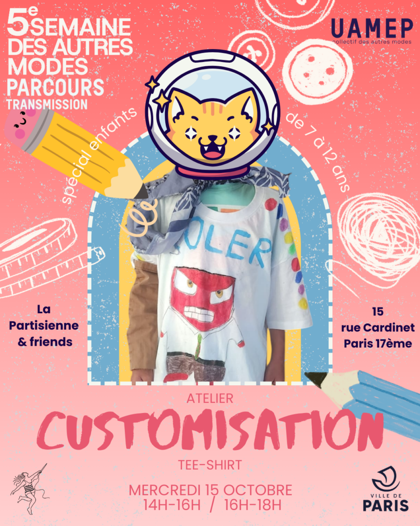 Venez avec son T-shirt preferé** et faites le participer à un atelier original et exclusif de customisation : une approche amusante pour sensibiliser à l’upcycling et rudiments de la couture.