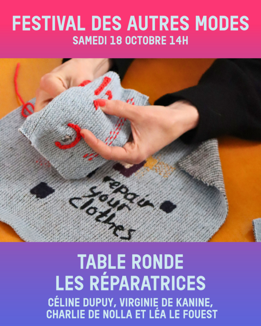 Ces créatrices partagent leur art au service de la réparation : patchs, broderies, teinture, ou encore réparation de soi grâce aux vêtements. Elles transmettent leurs gestes lors d’ateliers, durant le Festival des Autres Modes.