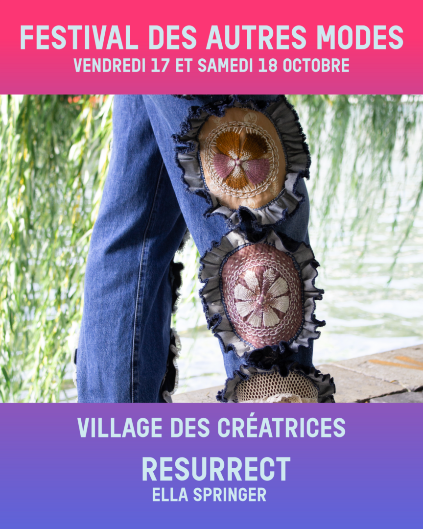 Ella Springer artiste et designer originaire du Michigan, développe aujourd’hui sa marque personnelle, Resurrect, à Paris. Au cœur de Resurrect se trouve une passion, redonner vie aux pièces abîmées grâce à l’art textile et à diverses pratiques artisanales. Son ambition est de transformer notre regard sur la durée de vie et l’usure des vêtements, et d’inviter chacun à percevoir une nouvelle valeur dans les habits oubliés.
